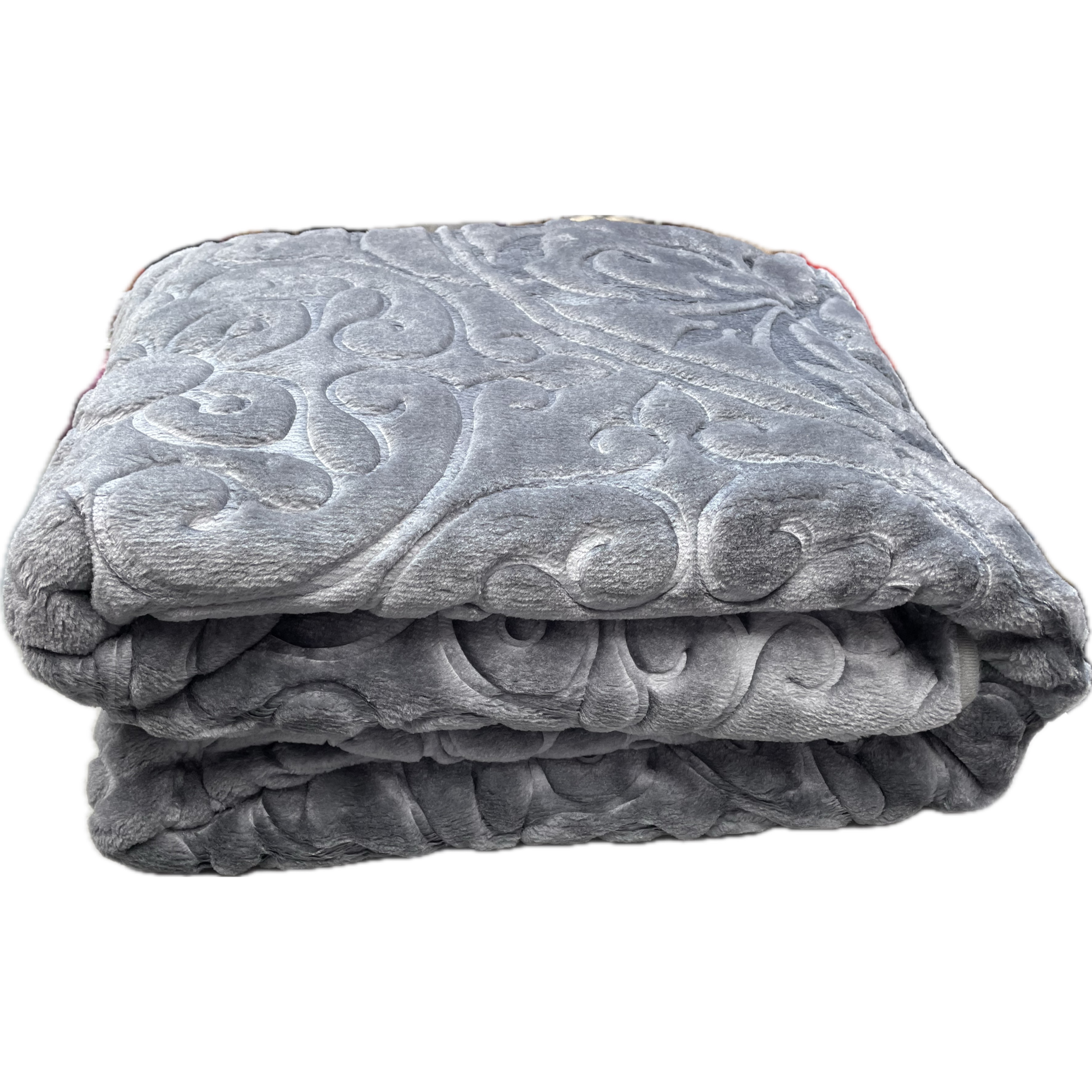 پتو گلبافت طرح گل برجسته تک رنگ - رنگ طوسی