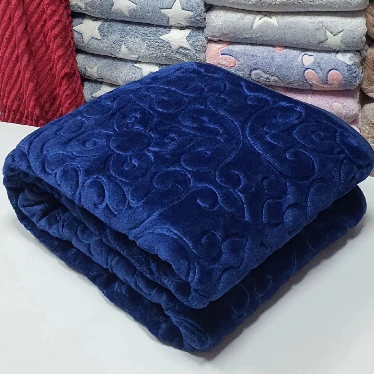 پتو گلبافت طرح گل برجسته تک رنگ - رنگ سورمه ای