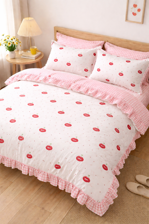 روتختی یک رو چاپی پینترستی چین دار (جنس نخ میکروتنسل) رنگ صورتی طرح لب