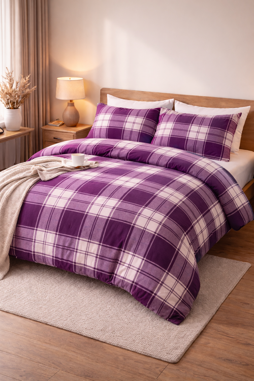 روتختی یک رو چاپی پینترستی (جنس نخ میکروتنسل) طرح چهارخونه بنفش