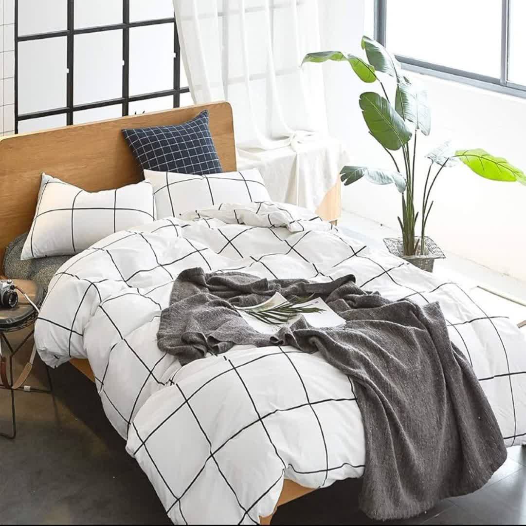 پشت لحاف و ملحفه کشدار ساده بدون طرح میباشد.