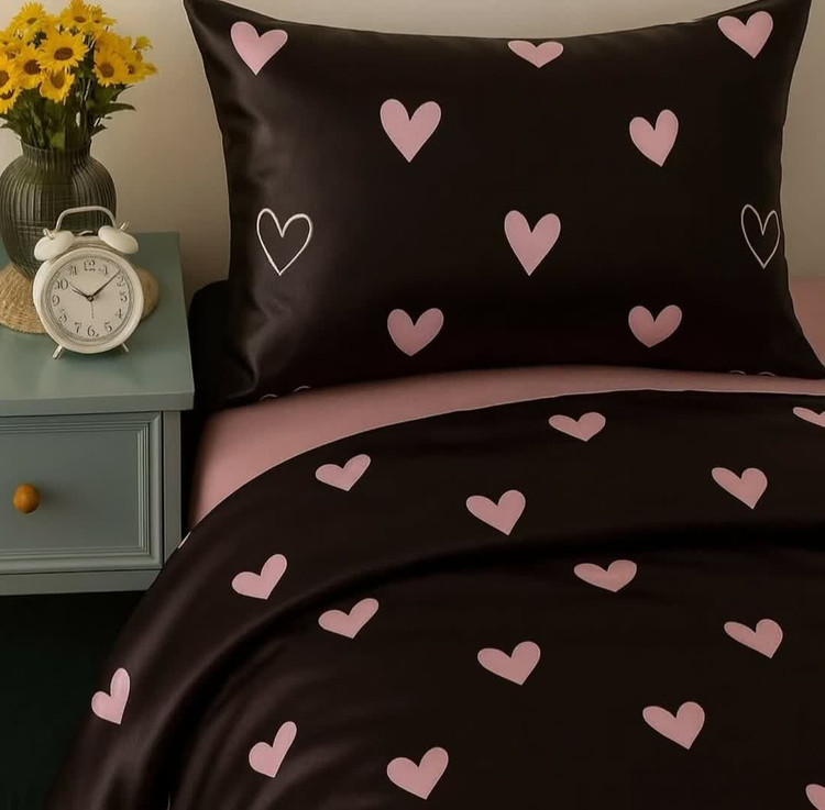 روتختی یک رو چاپی پینترستی (جنس نخ میکروتنسل) رنگ مشکی طرح قلب