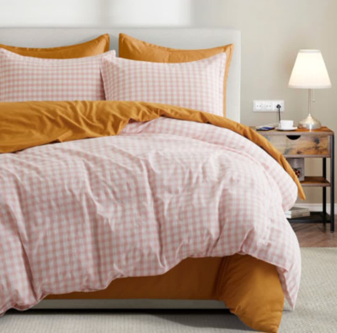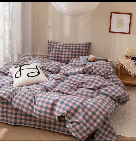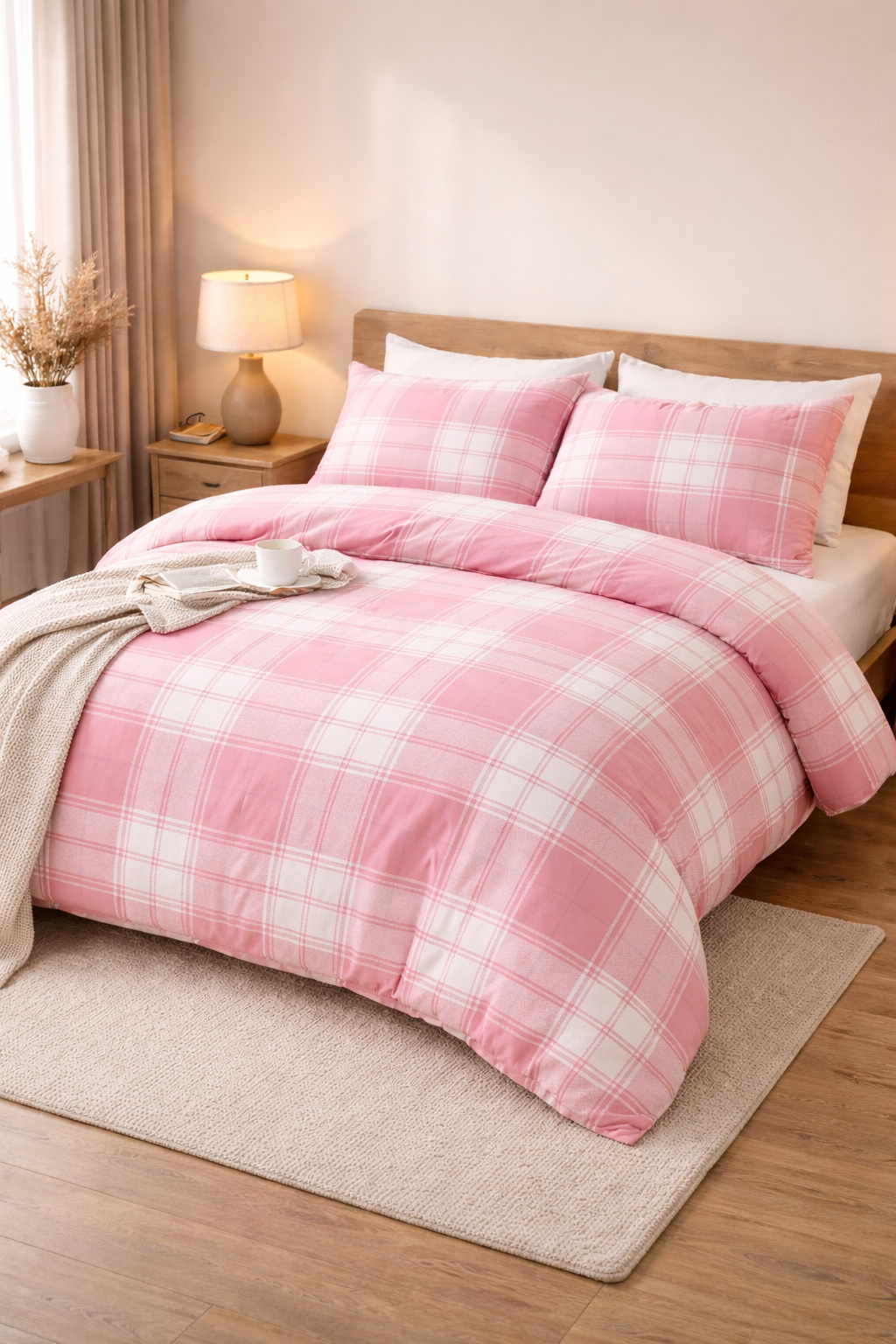 روتختی یک رو چاپی پینترستی (جنس نخ میکروتنسل) طرح چهارخونه صورتی