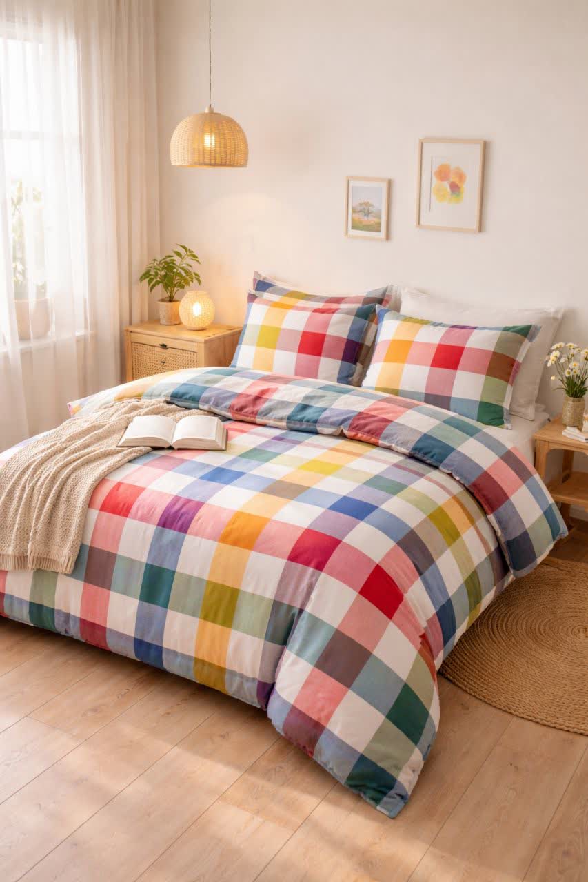 روتختی یک رو چاپی پینترستی (جنس نخ میکروتنسل) طرح چهارخونه