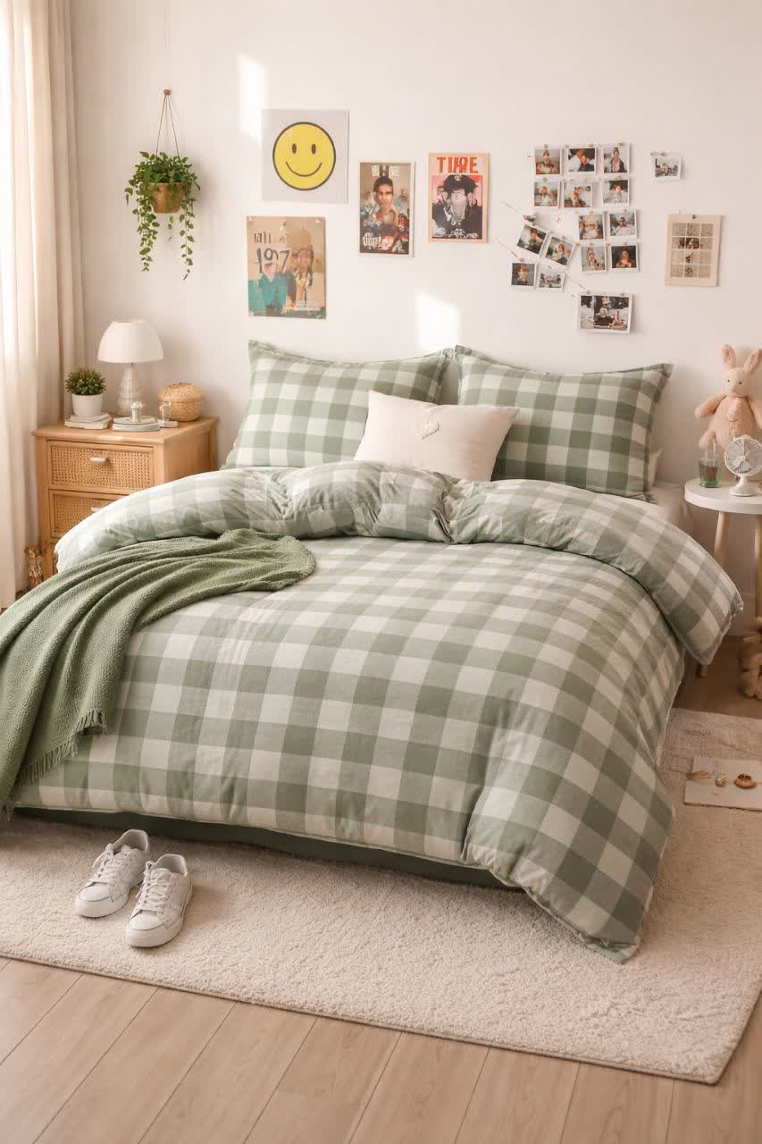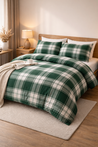 روتختی یک رو چاپی پینترستی (جنس نخ میکروتنسل) طرح چهارخونه یشمی