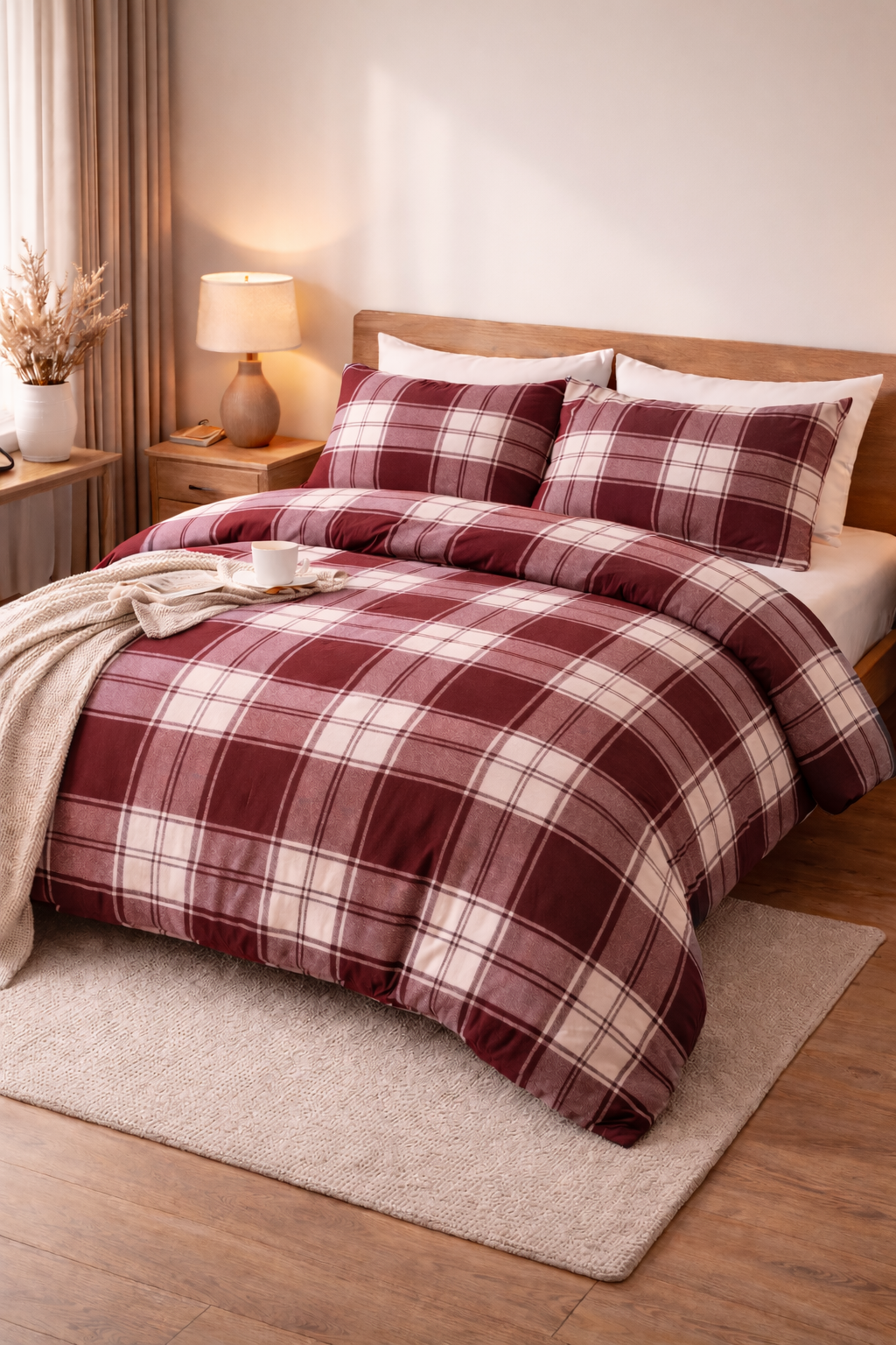 روتختی یک رو چاپی پینترستی (جنس نخ میکروتنسل) طرح چهارخونه زرشکی