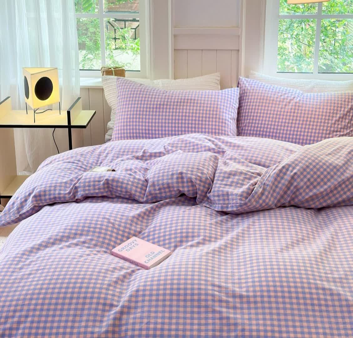 روتختی یک رو چاپی پینترستی (جنس نخ میکروتنسل) طرح چهارخونه بنفش
