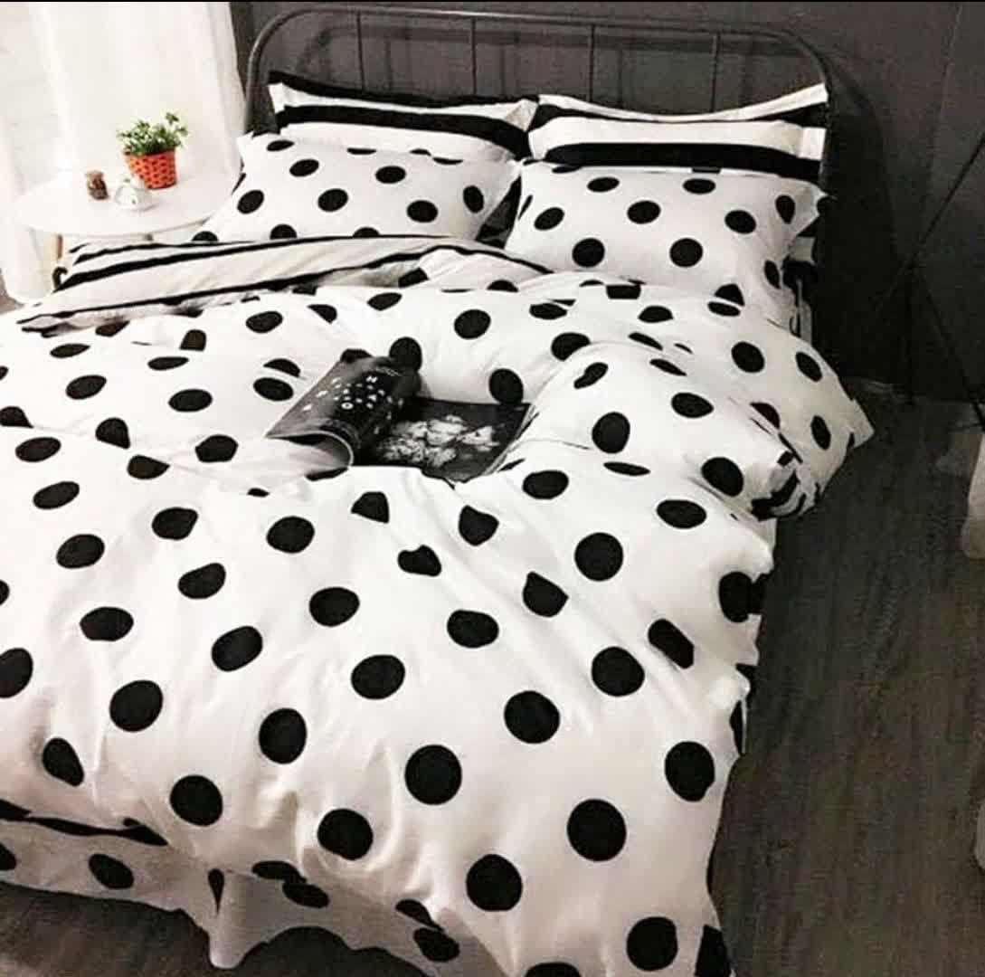 روتختی یک رو چاپی پینترستی (جنس نخ میکروتنسل) طرح خالدار مشکی