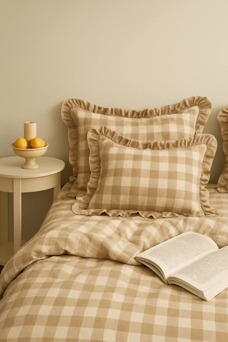 روتختی یک رو چاپی پینترستی چین دار (جنس نخ میکروتنسل) طرح چهارخونه کرم طرحدار