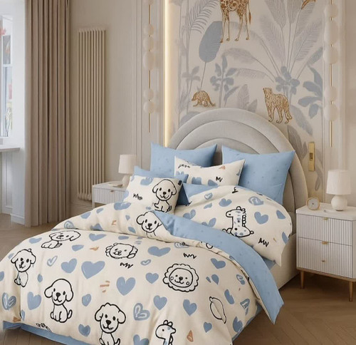 روتختی یک رو چاپی پینترستی (جنس نخ میکروتنسل) طرح خالدار آبی
