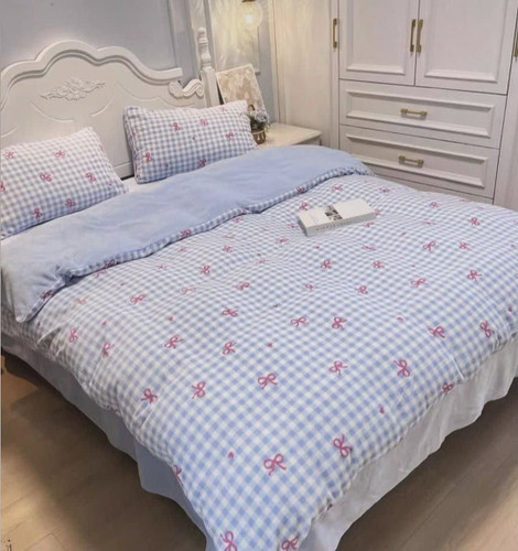 روتختی یک رو چاپی پینترستی (جنس نخ میکروتنسل) طرح چهارخونه آبی